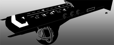 Design 09 from the previous assignment won. Since the previous assignment only called for a black and white silhouette, I hadn’t completely modeled the ship. Also, a lot of the shapes were “off.” What I mean by that is that the ship looked more or less correct from the angle that I rendered the image, but some of the shapes were distorted or floating off in space and whatnot, so I had to actually finish modeling the ship itself first. I then took the silhouette render (from the previous assignment) and the shaded render (seen below) into Photoshop and started assigning values and making designs out of them.